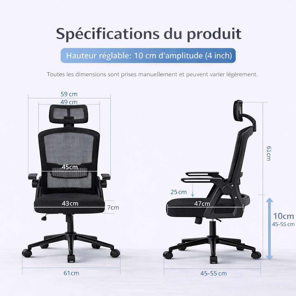 Hauteur réglable sur 10 cm d’amplitude pour un ajustement précis.